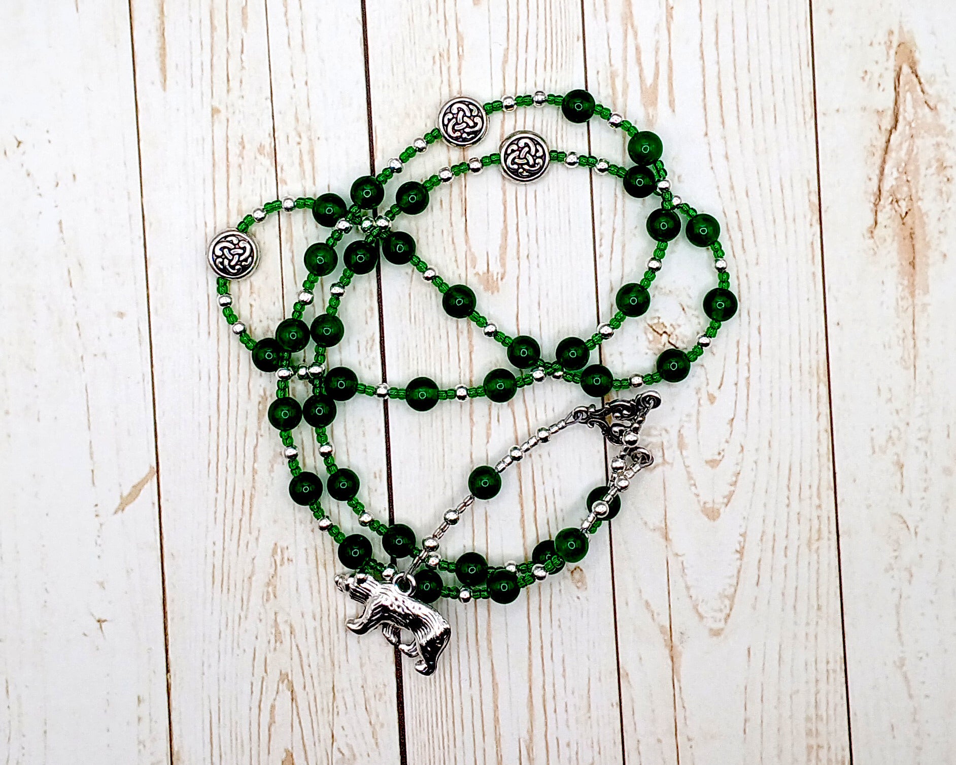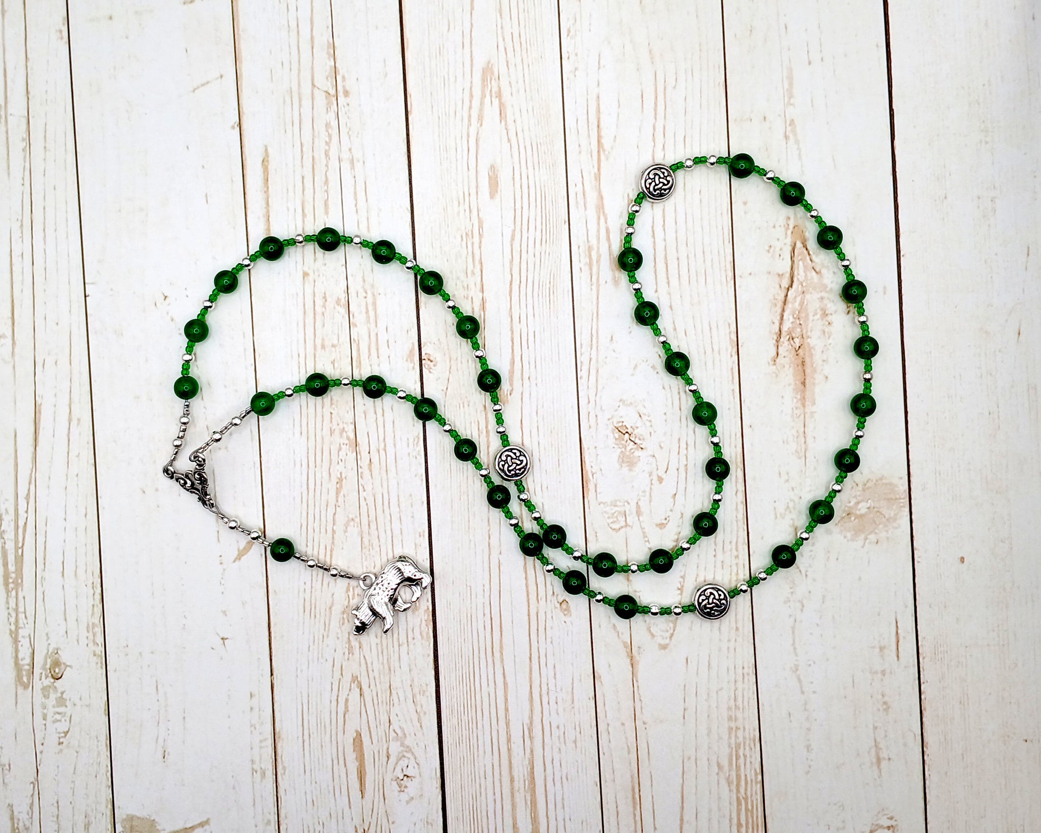 Artio Prayer Bead Necklace in Green Agate: Gaulish Celtic Goddess of the Bear