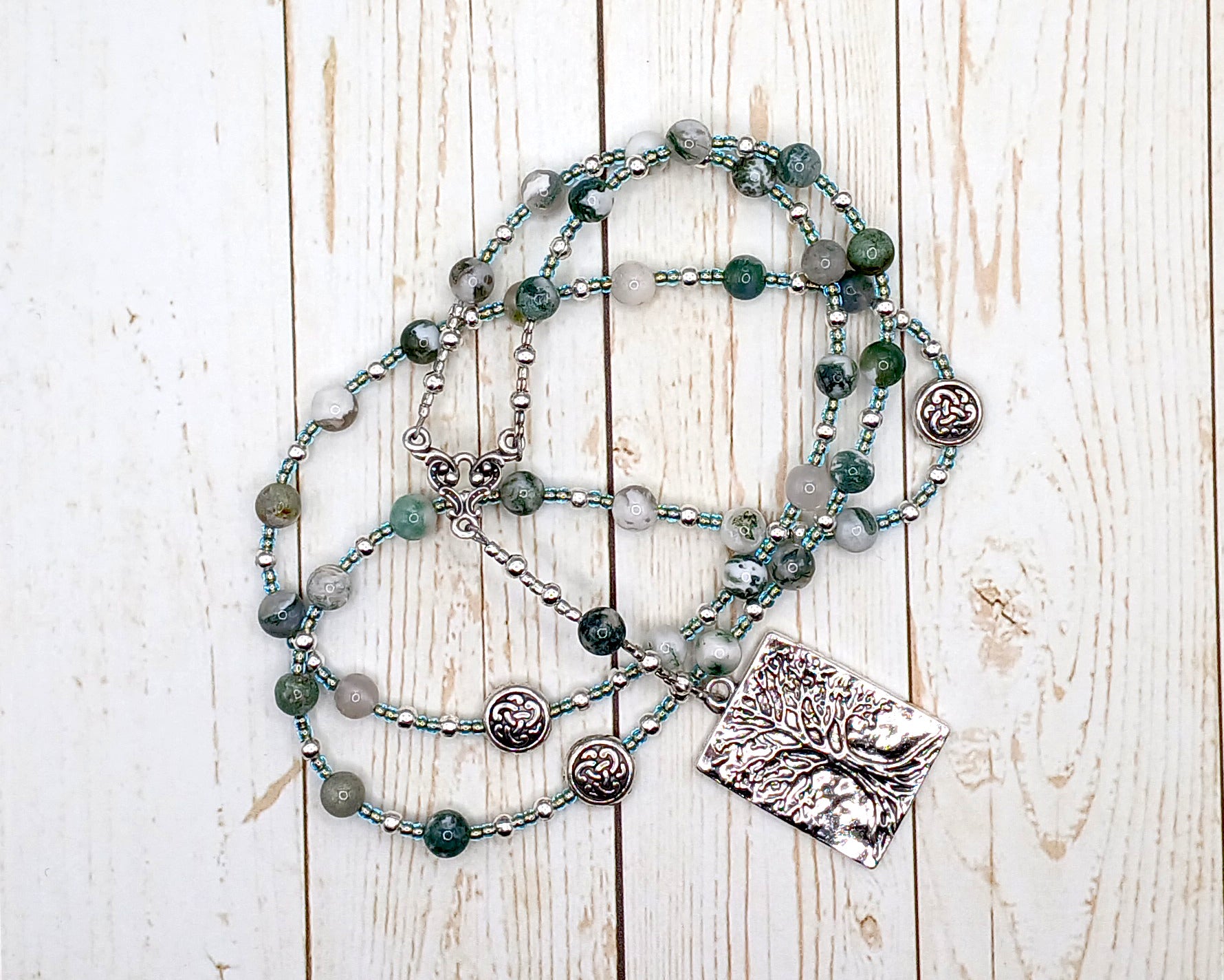 Prayer Bead Necklace for the Norns in Tree Agate: Norse Goddesses of Fate, Guardians of the World Tree